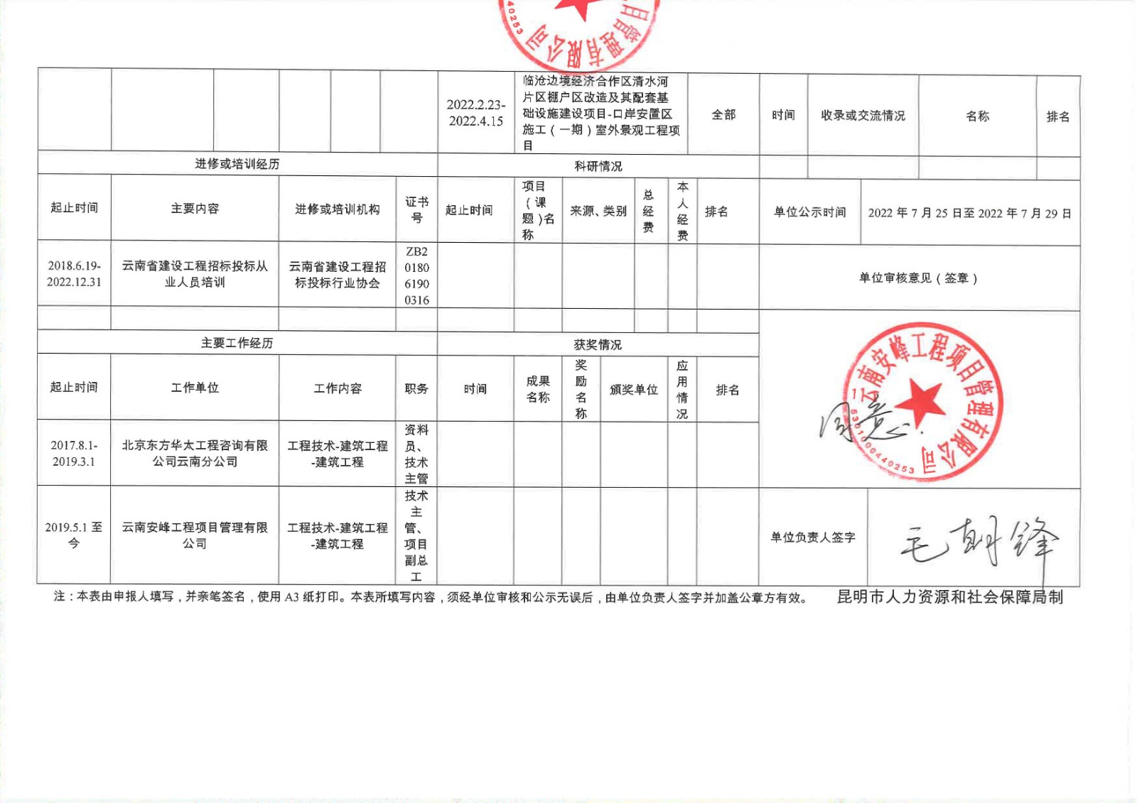 關于云南安峰工程項目管理有限公司員工李慶雷申報建筑工程系列(專業(yè))中級職稱情況公示