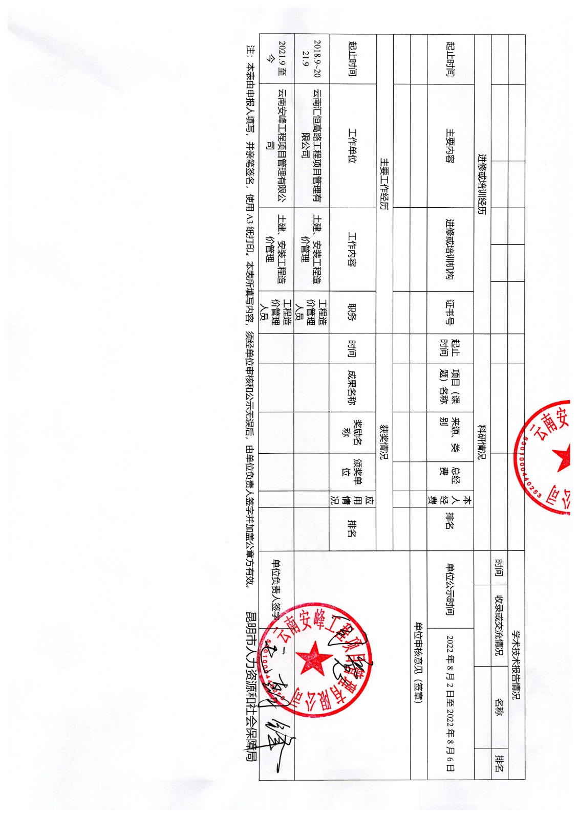 關(guān)于云南安峰工程項(xiàng)目管理有限公司員工王乾申報(bào)建筑工程系列(專業(yè))中級(jí)職稱情況公示
