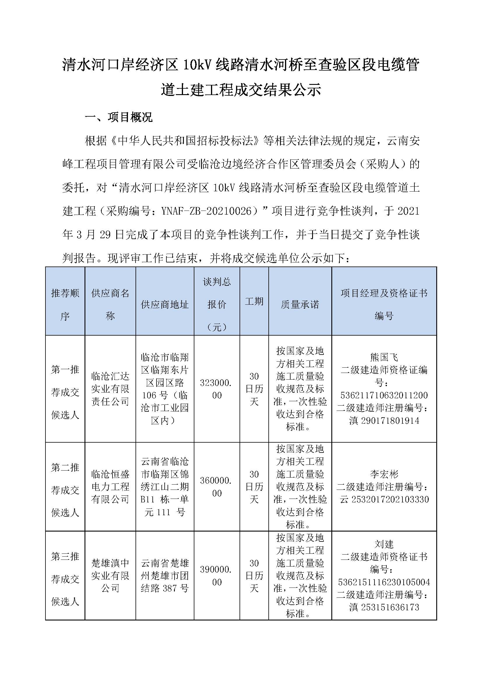 清水河口岸經濟區(qū)10kV線路清水河橋至查驗區(qū)段電纜管道土建工程成交結果公示