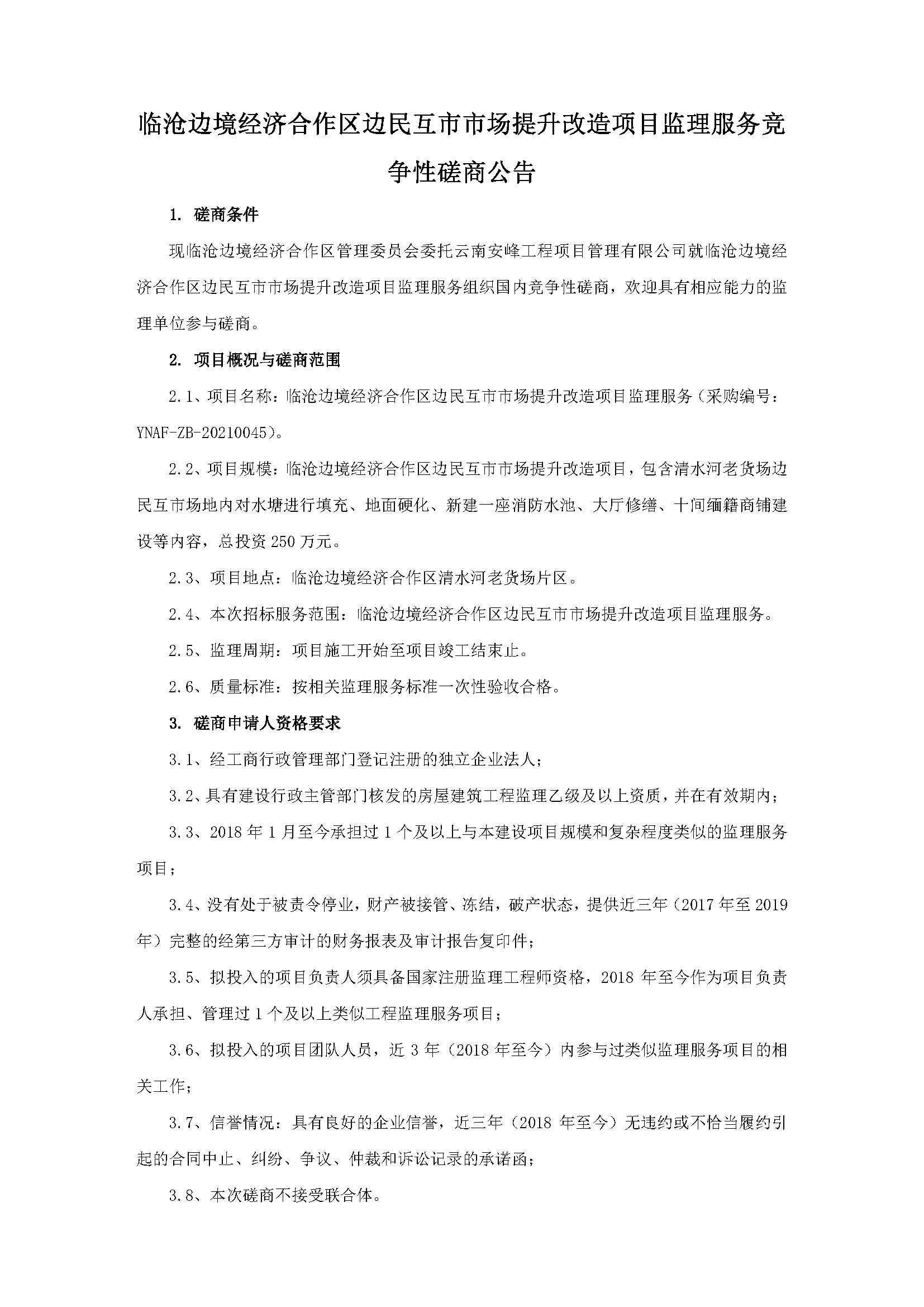 臨滄邊境經(jīng)濟合作區(qū)邊民互市市場提升改造項目監(jiān)理服務(wù)競爭性磋商公告