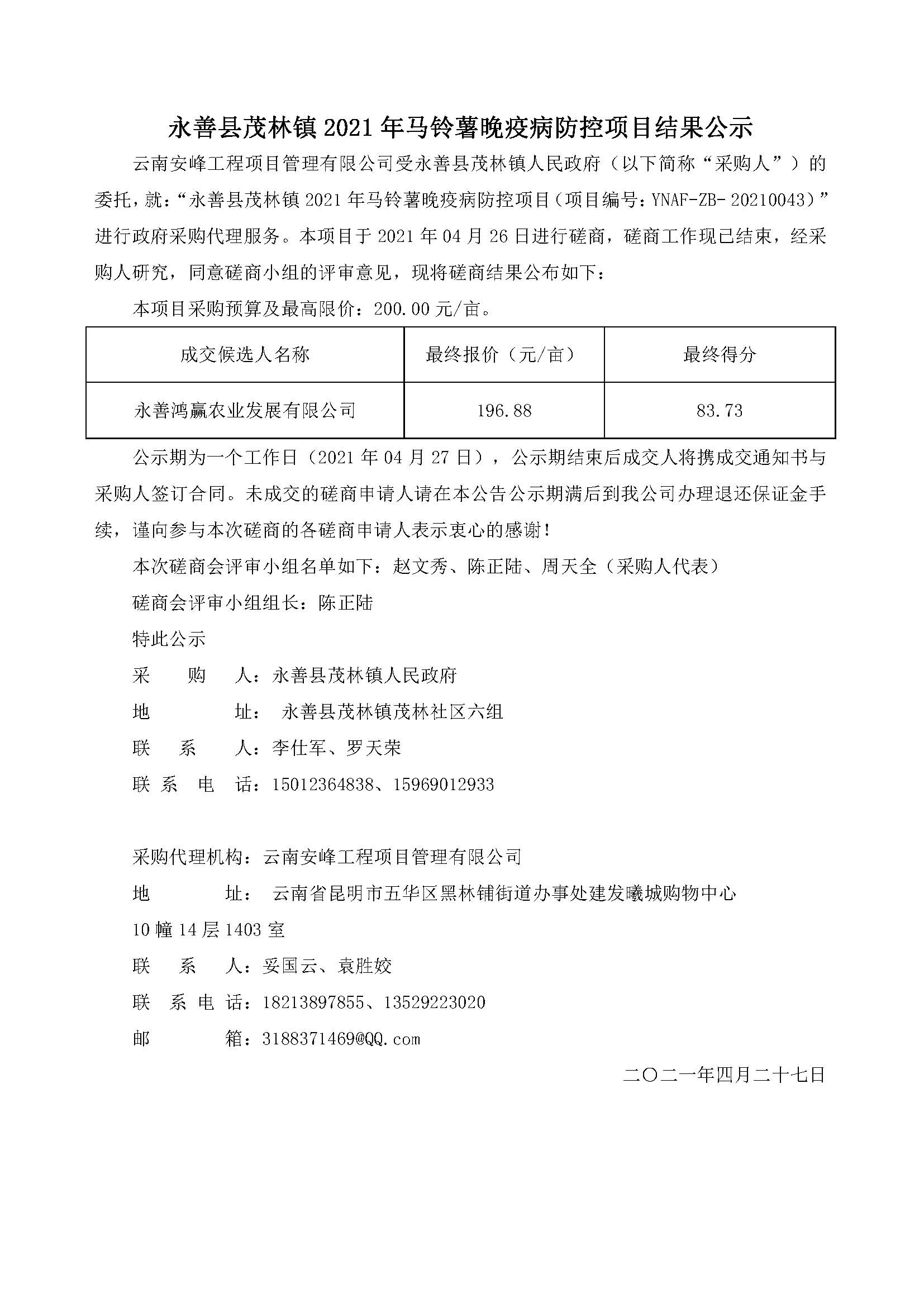 永善縣茂林鎮(zhèn)2021年馬鈴薯晚疫病防控項目結(jié)果公示