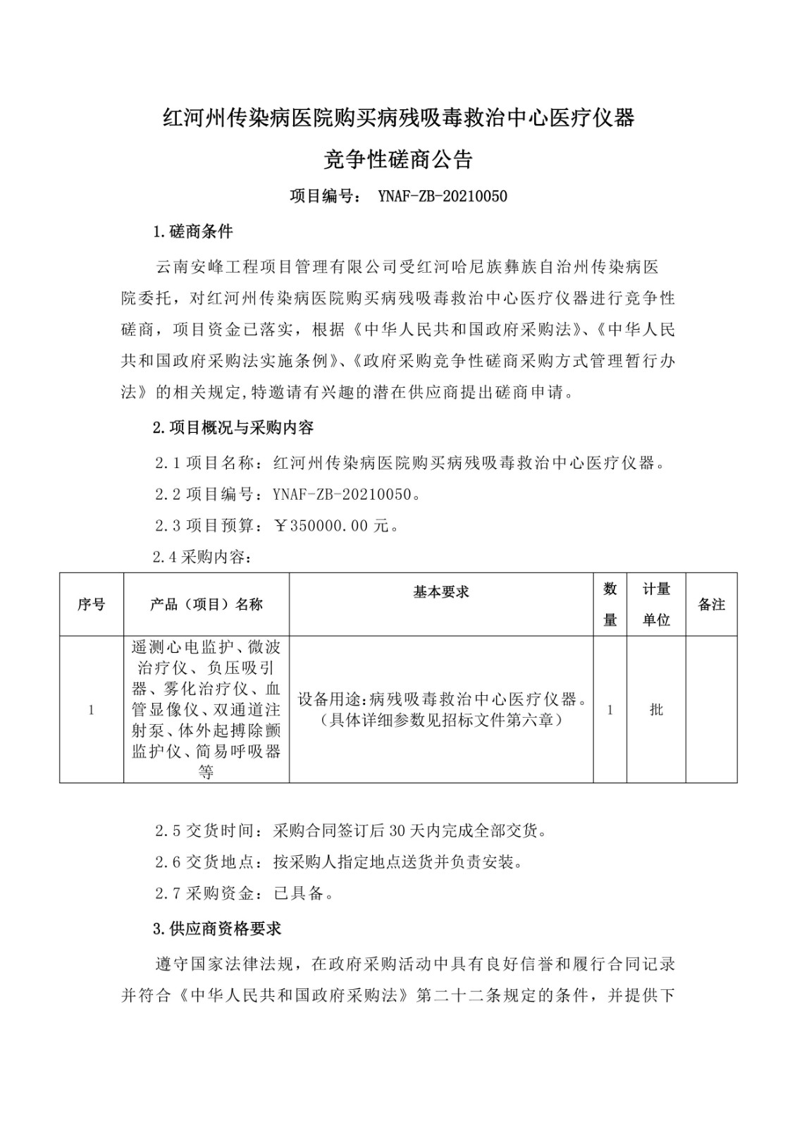 紅河州傳染病醫(yī)院購買病殘吸毒救治中心醫(yī)療儀器 競爭性磋商公告