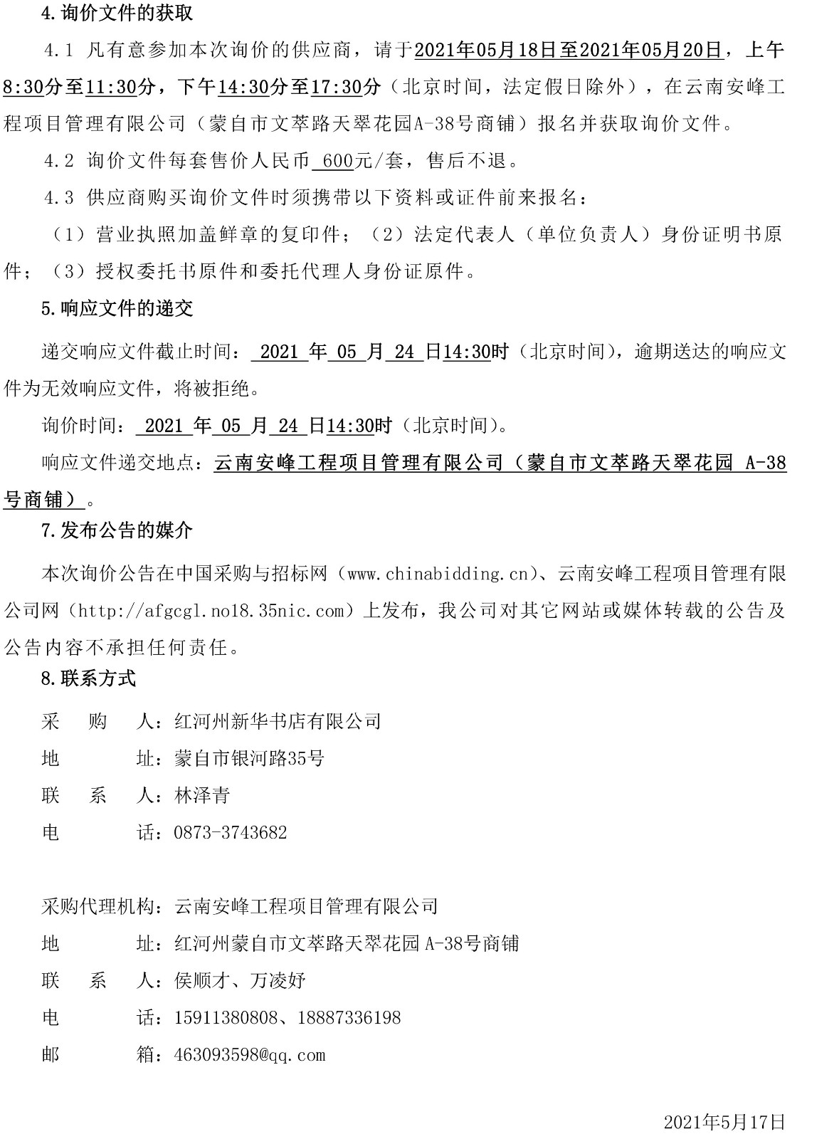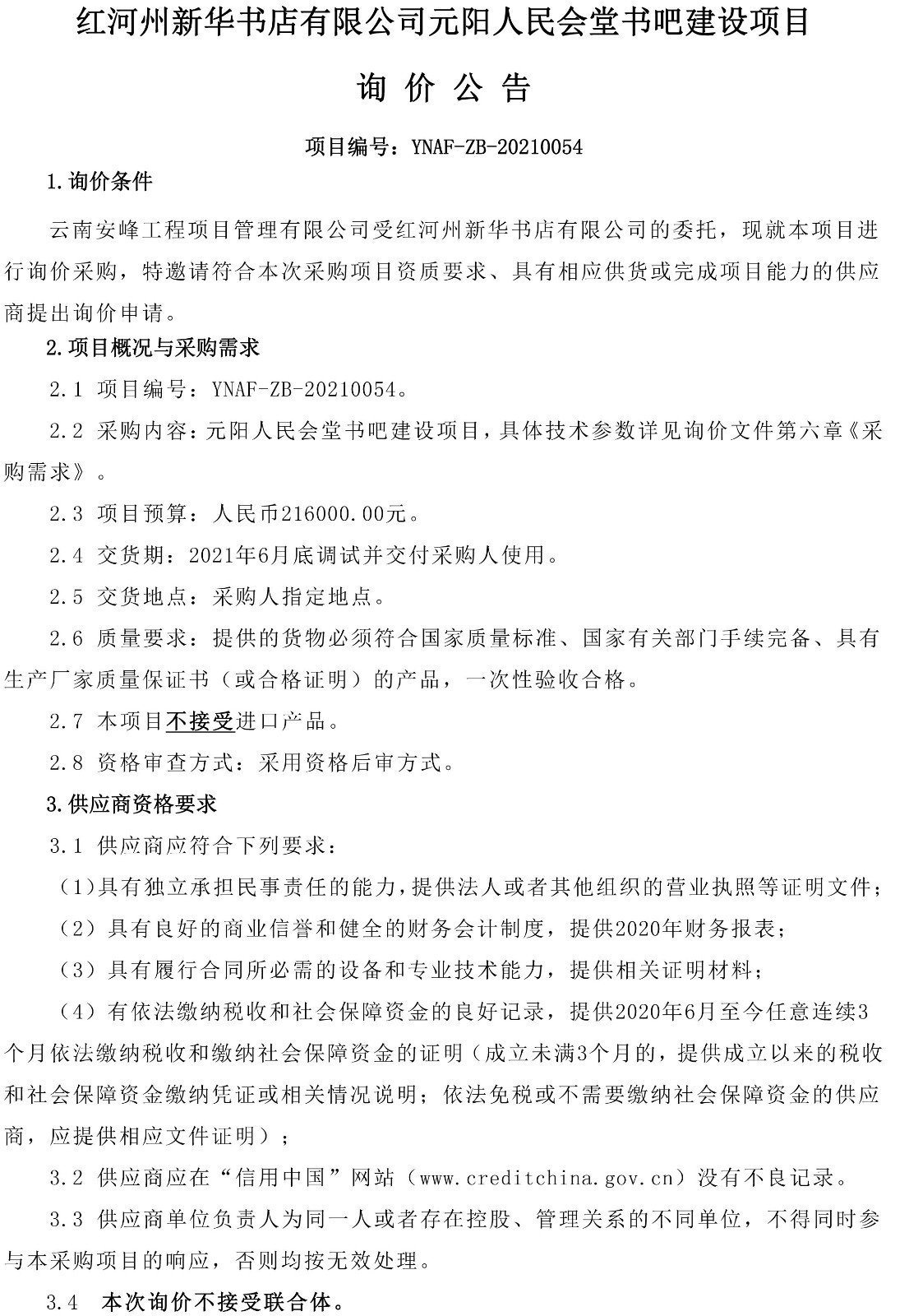 紅河州新華書店有限公司元陽人民會(huì)堂書吧建設(shè)項(xiàng)目詢價(jià)公告