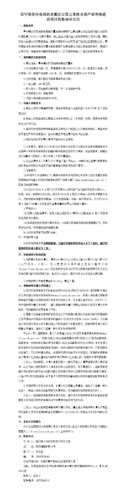 景罕鎮(zhèn)曼環(huán)易地扶貧搬遷安置點(diǎn)桑枝香菇產(chǎn)業(yè)基地建設(shè)項(xiàng)目資格預(yù)審公告