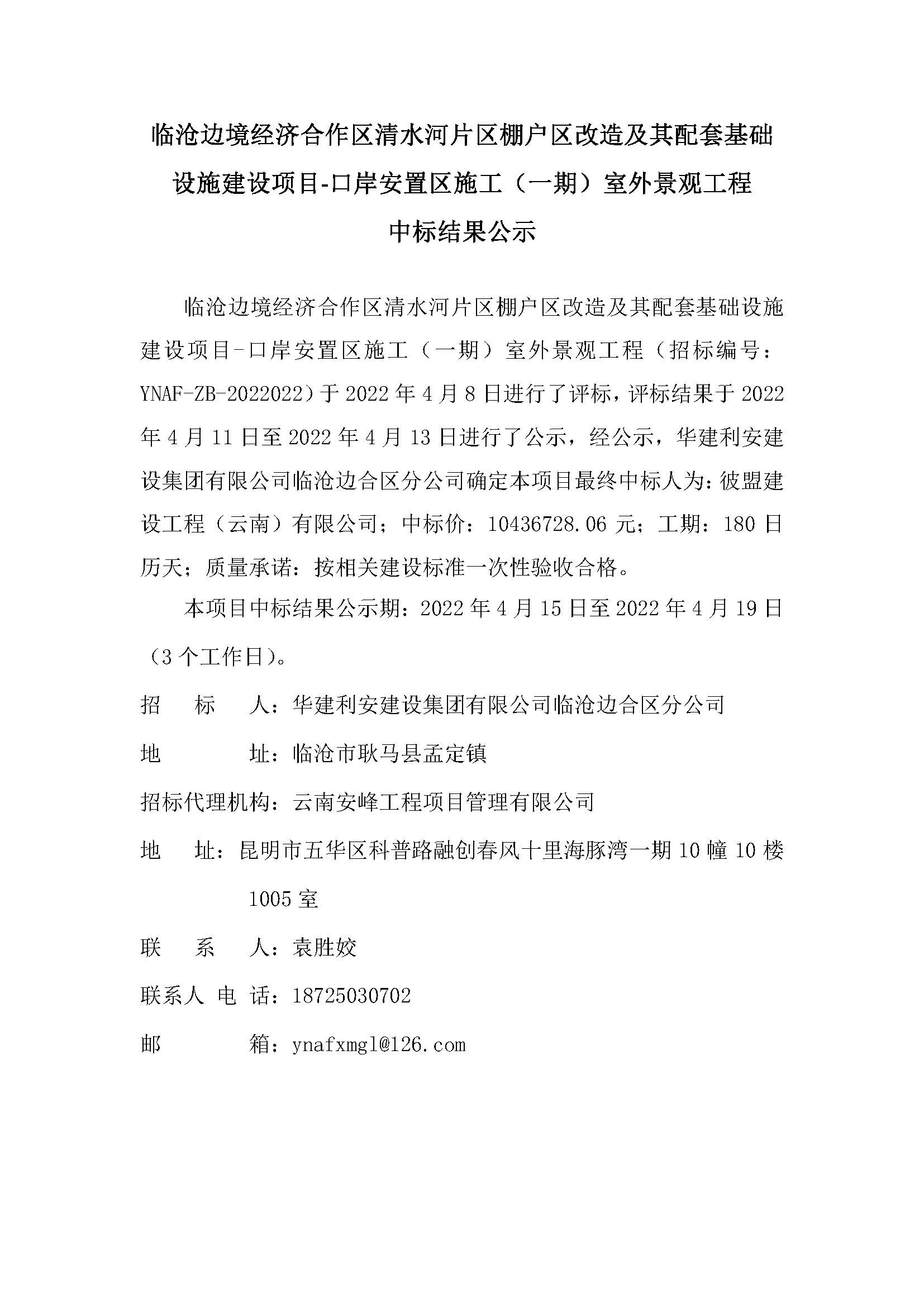 臨滄邊境經(jīng)濟(jì)合作區(qū)清水河片區(qū)棚戶區(qū)改造及其配套基礎(chǔ)設(shè)施建設(shè)項(xiàng)目-口岸安置區(qū)施工(一期)室外景觀工程中標(biāo)結(jié)果公示