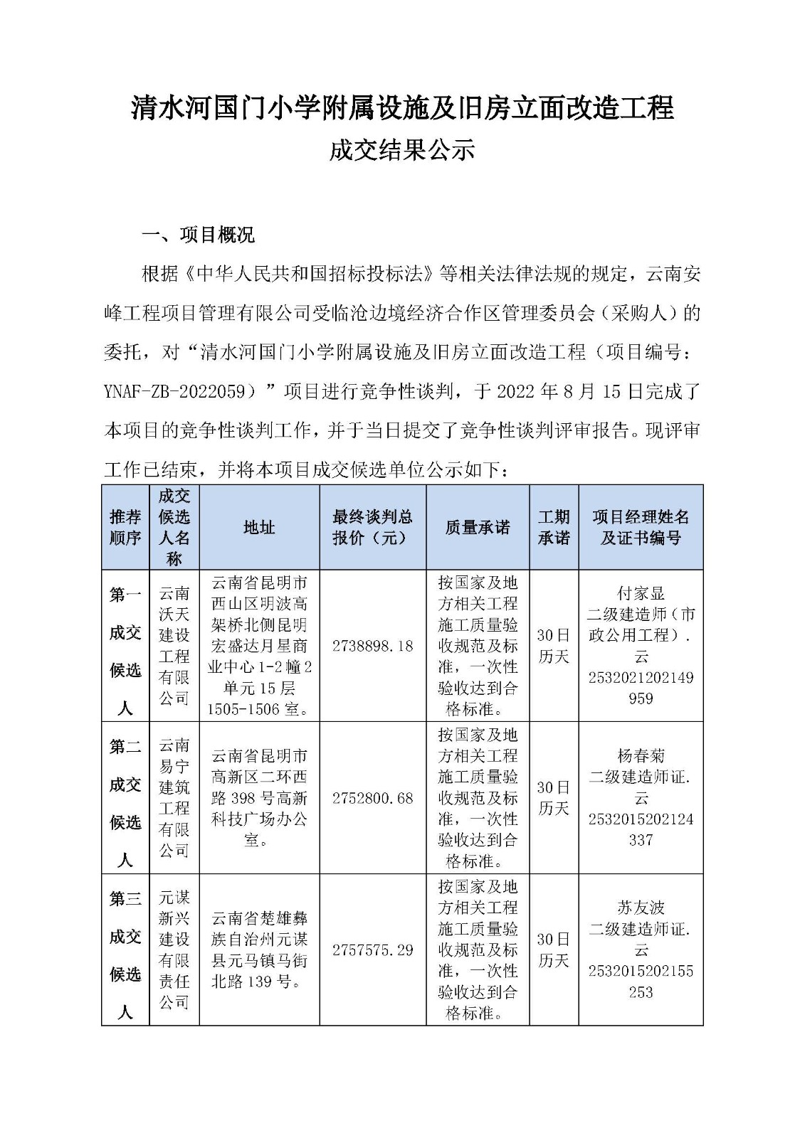 清水河國(guó)門小學(xué)附屬設(shè)施及舊房立面改造工程成交結(jié)果公示
