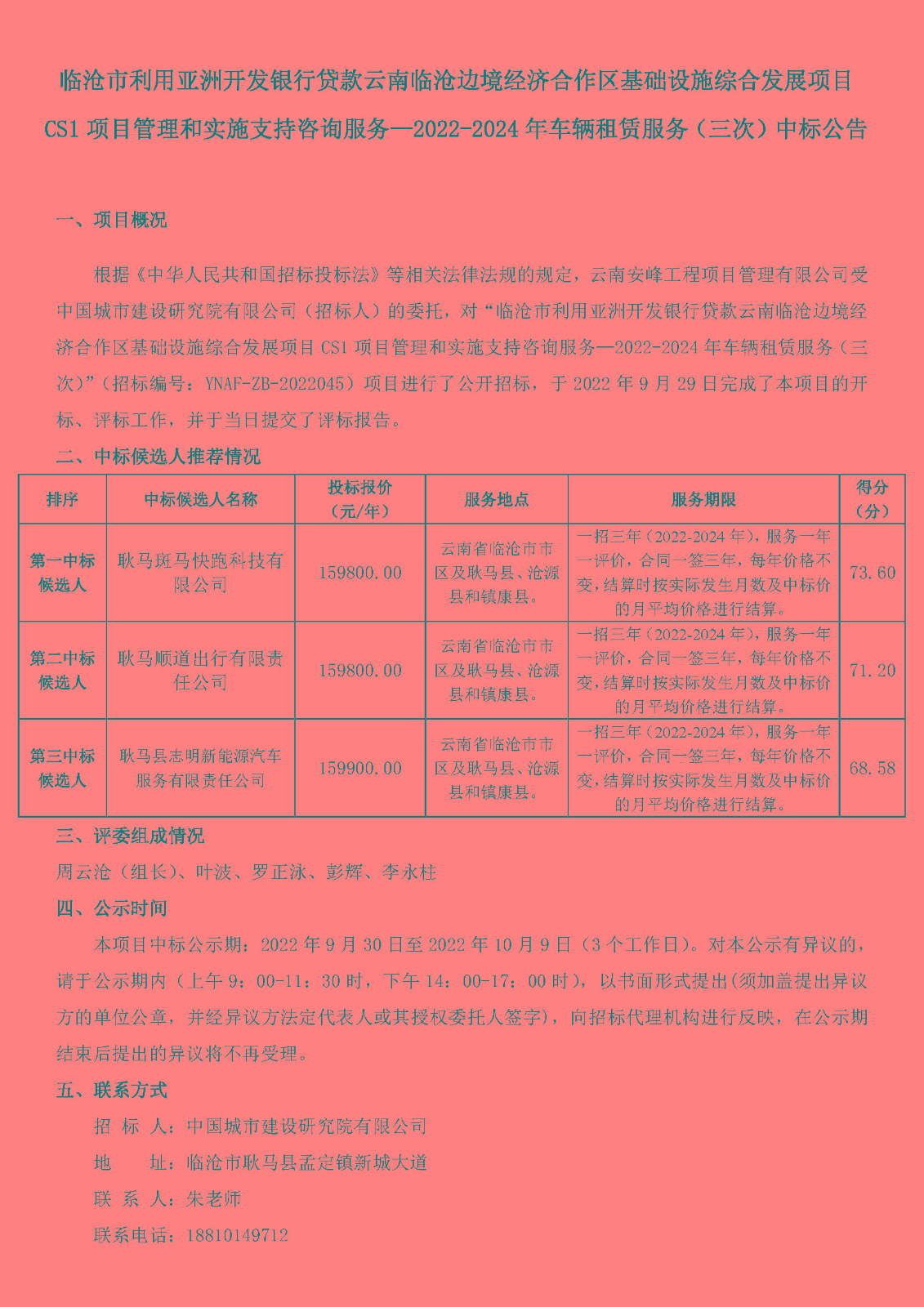 臨滄市利用亞洲開發(fā)銀行貸款云南臨滄邊境經(jīng)濟(jì)合作區(qū)基礎(chǔ)設(shè)施綜合發(fā)展項目CS1項目管理和實施支持咨詢服務(wù)—2022-2024年車輛租賃服務(wù)(三次)