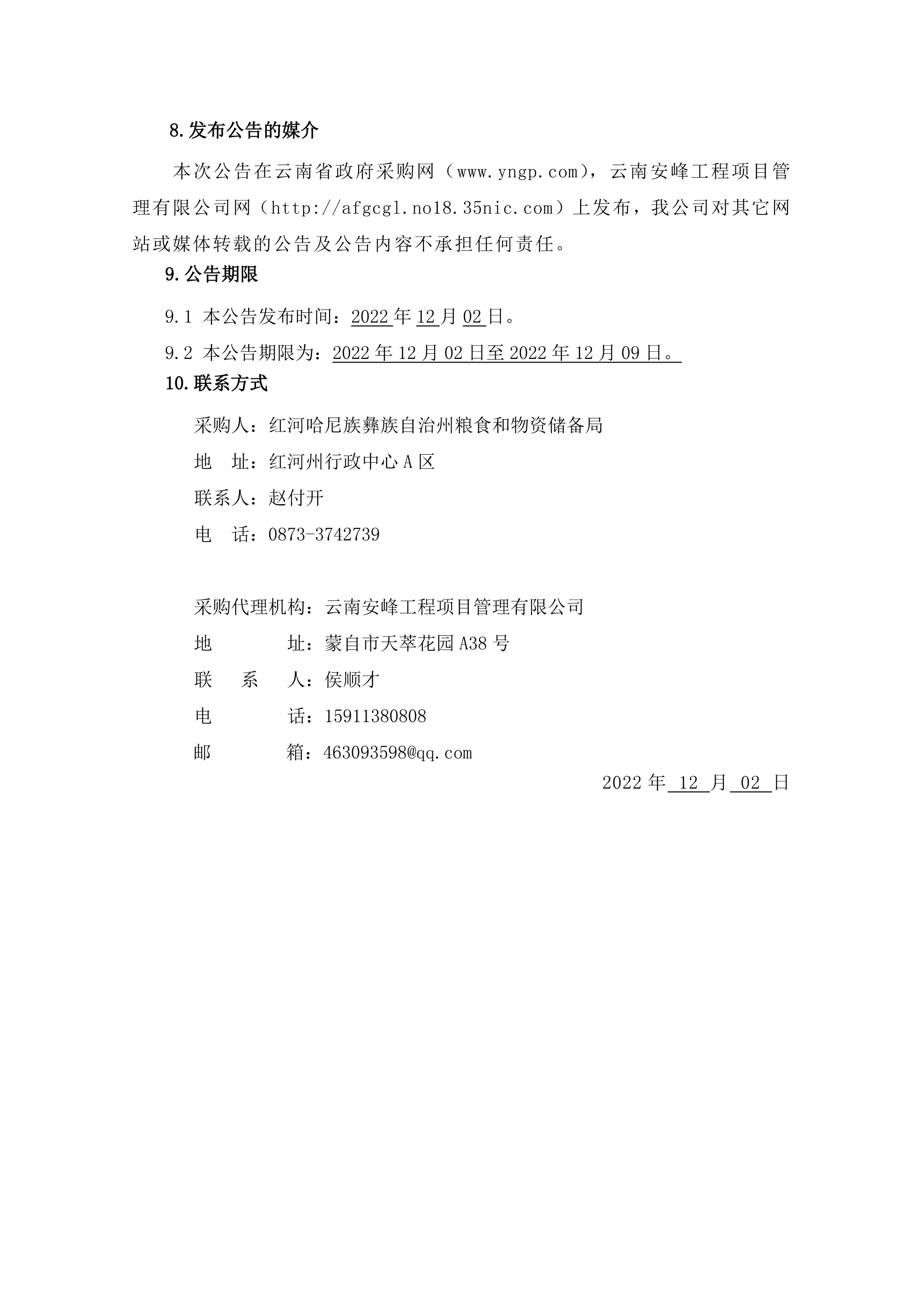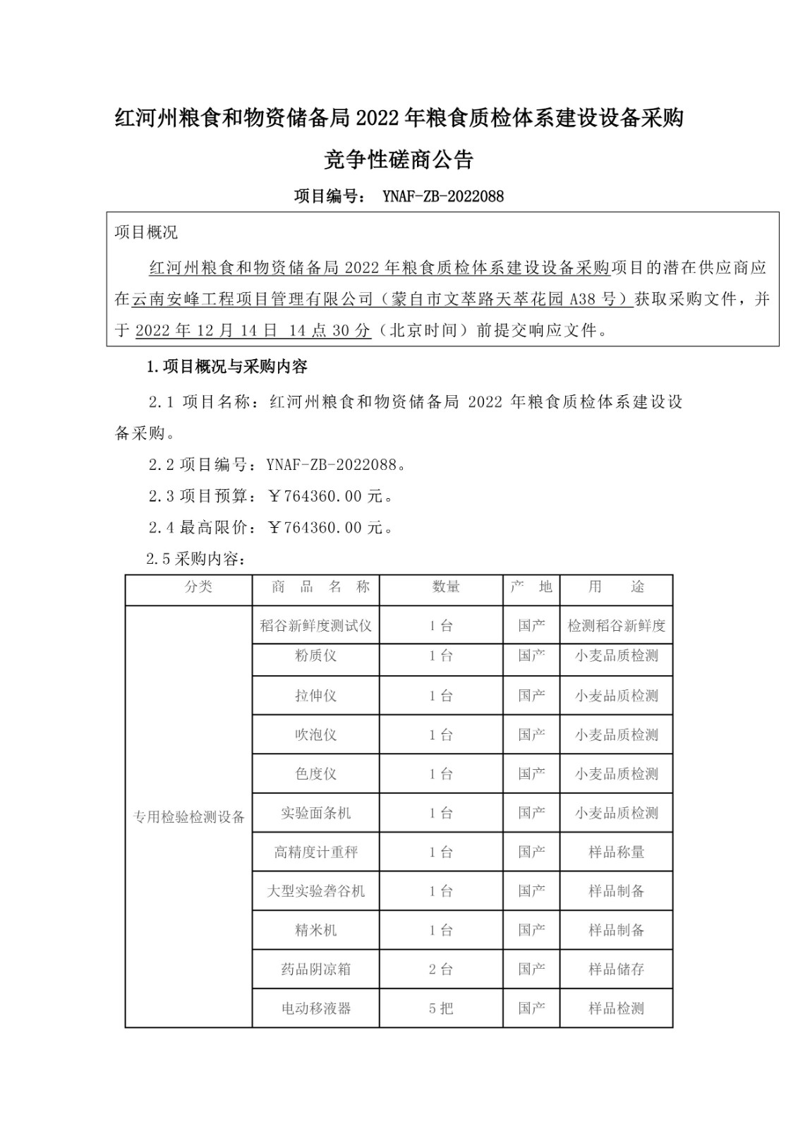 紅河州糧食和物資儲備局2022年糧食質(zhì)檢體系建設(shè)設(shè)備采購競爭性磋商公告