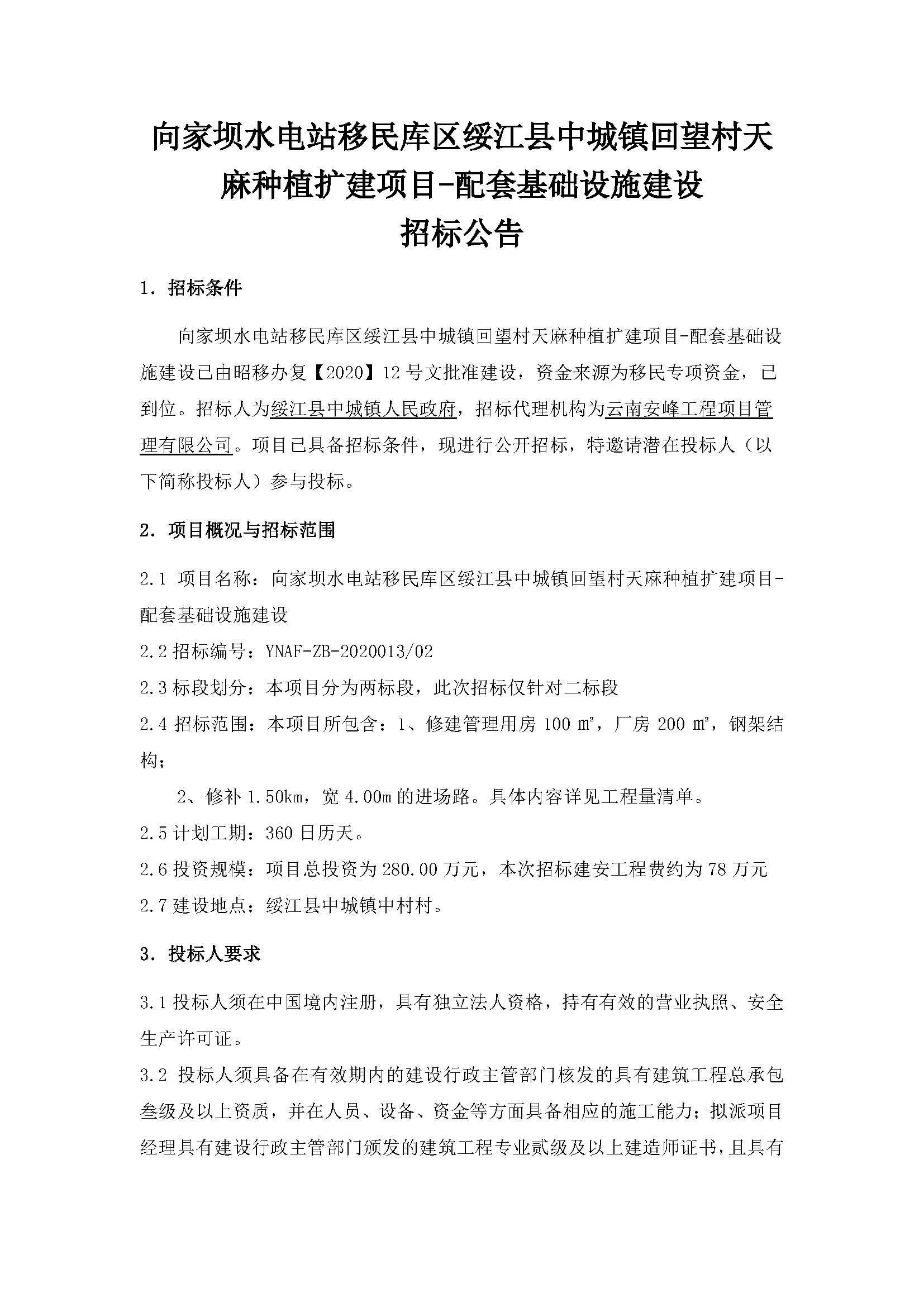 向家壩水電站移民庫區(qū)綏江縣中城鎮(zhèn)回望村天麻種植擴建項目-配套基礎設施建設