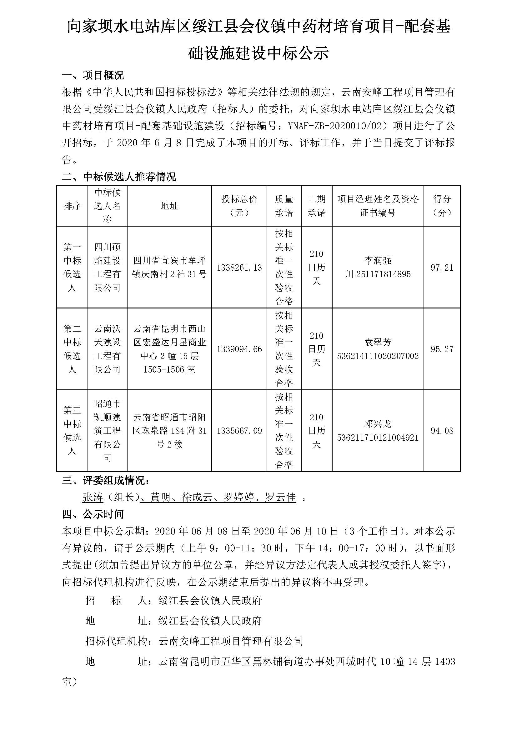向家壩水電站庫(kù)區(qū)綏江縣會(huì)儀鎮(zhèn)中藥材培育項(xiàng)目-配套基礎(chǔ)設(shè)施建設(shè)中標(biāo)公示