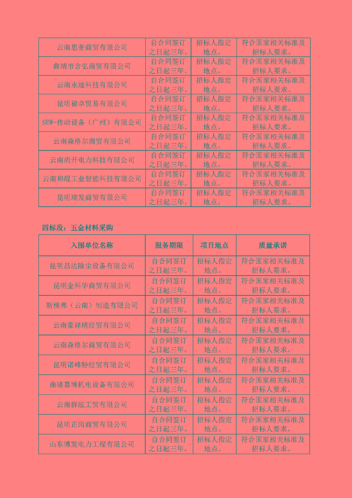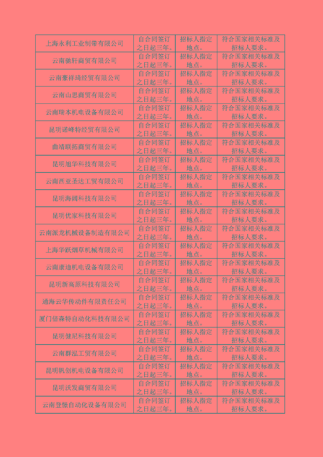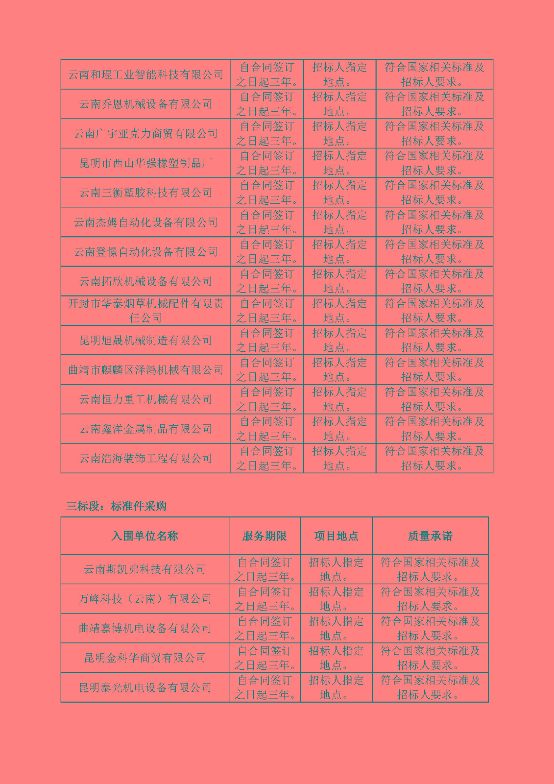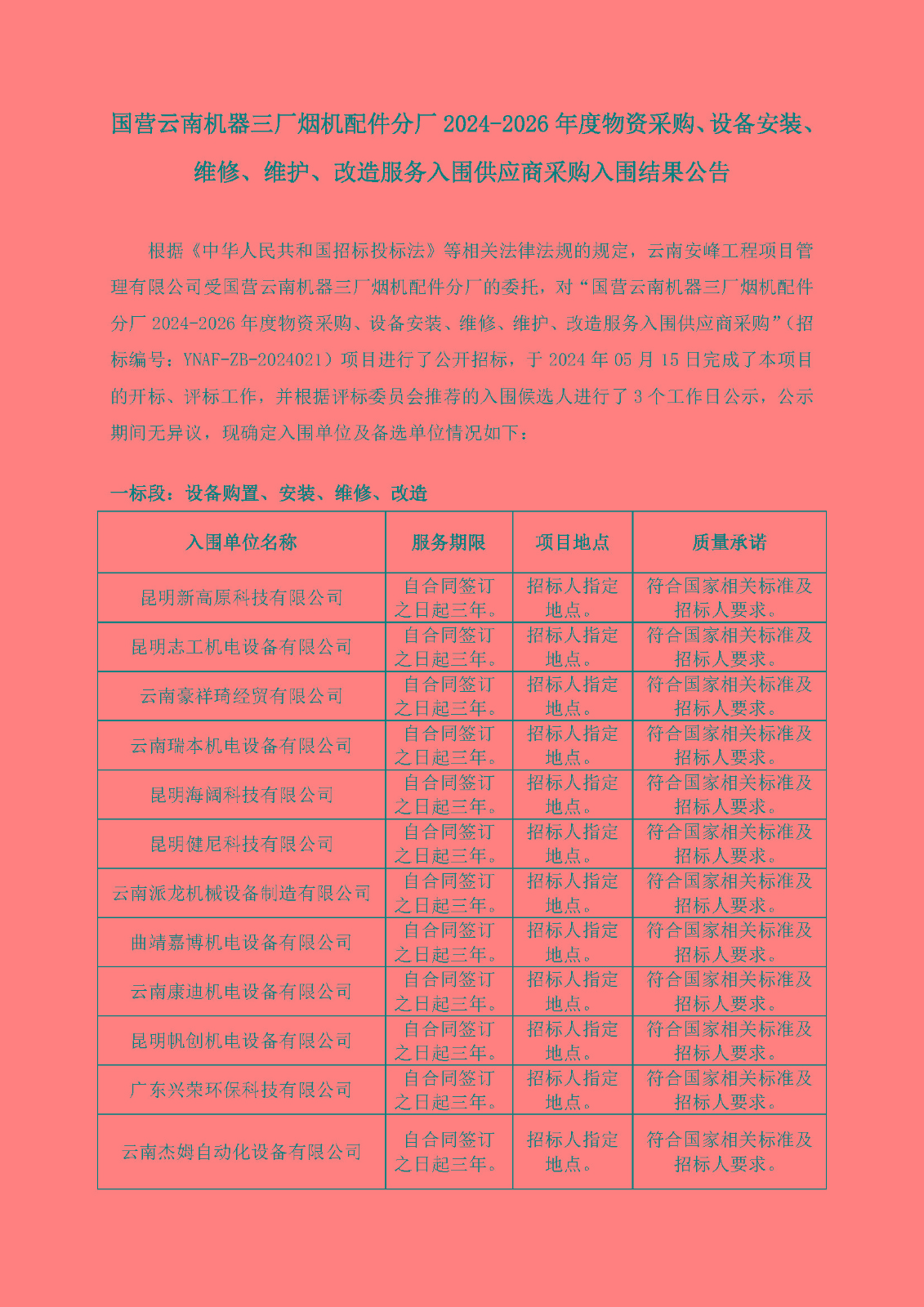 國營(yíng)云南機(jī)器三廠煙機(jī)配件分廠2024-2026年度物資采購、設(shè)備安裝、維修、維護(hù)、改造服務(wù)入圍供應(yīng)商采購入圍結(jié)果公告