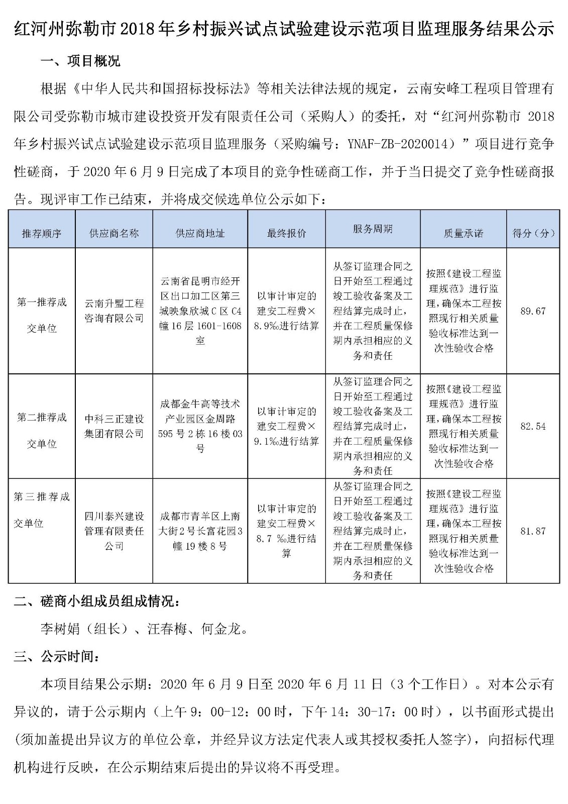 紅河州彌勒市2018年鄉(xiāng)村振興試點(diǎn)試驗(yàn)建設(shè)示范項(xiàng)目監(jiān)理服務(wù)結(jié)果公示