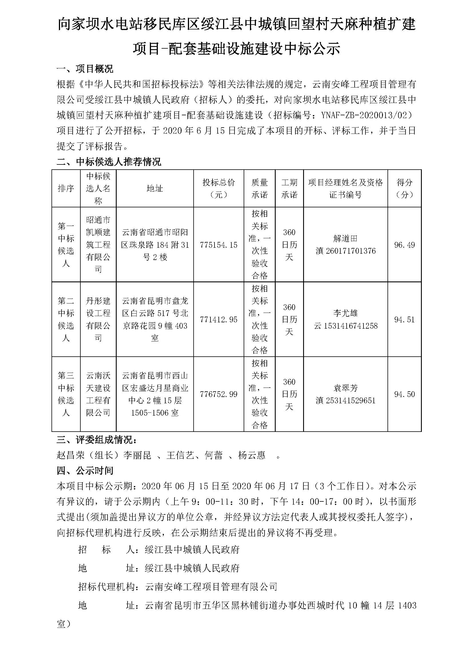 向家壩水電站移民庫區(qū)綏江縣中城鎮(zhèn)回望村天麻種植擴建項目-配套基礎(chǔ)設(shè)施建設(shè)中標公示