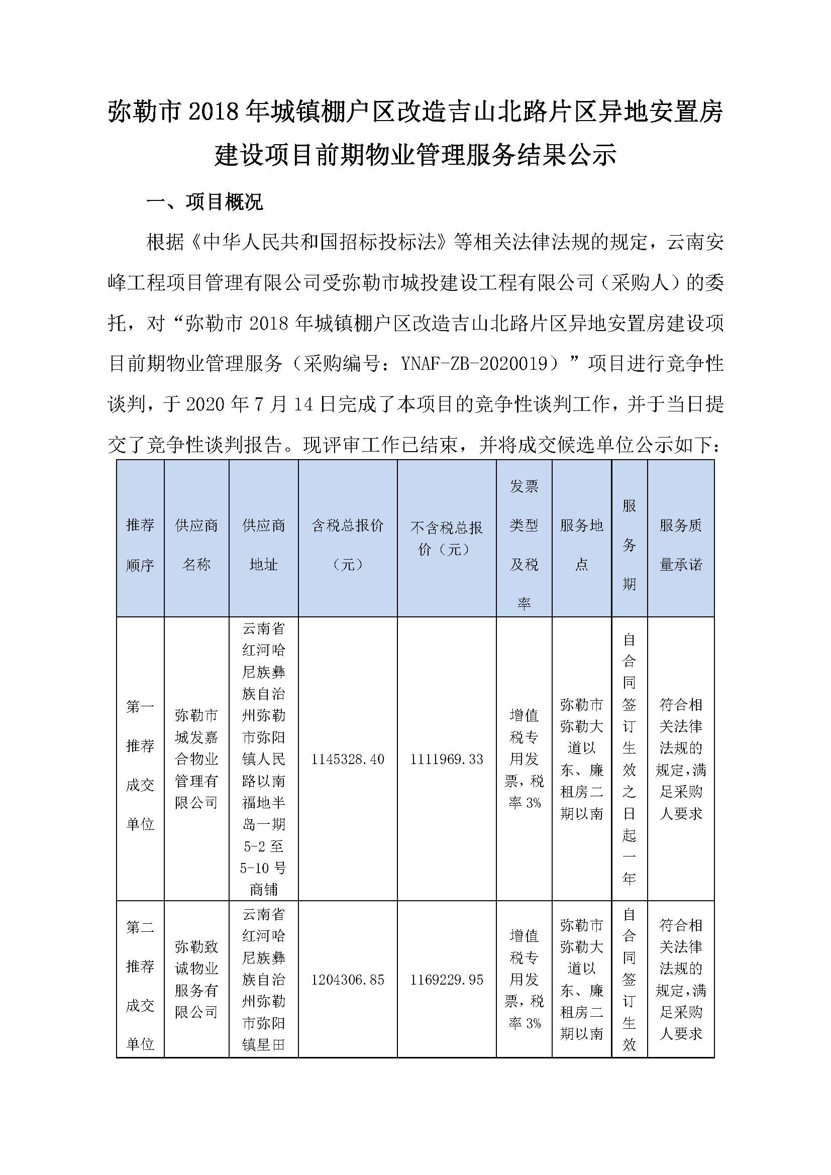 彌勒市2018年城鎮(zhèn)棚戶區(qū)改造吉山北路片區(qū)異地安置房建設(shè)項(xiàng)目前期物業(yè)管理服務(wù)結(jié)果公示