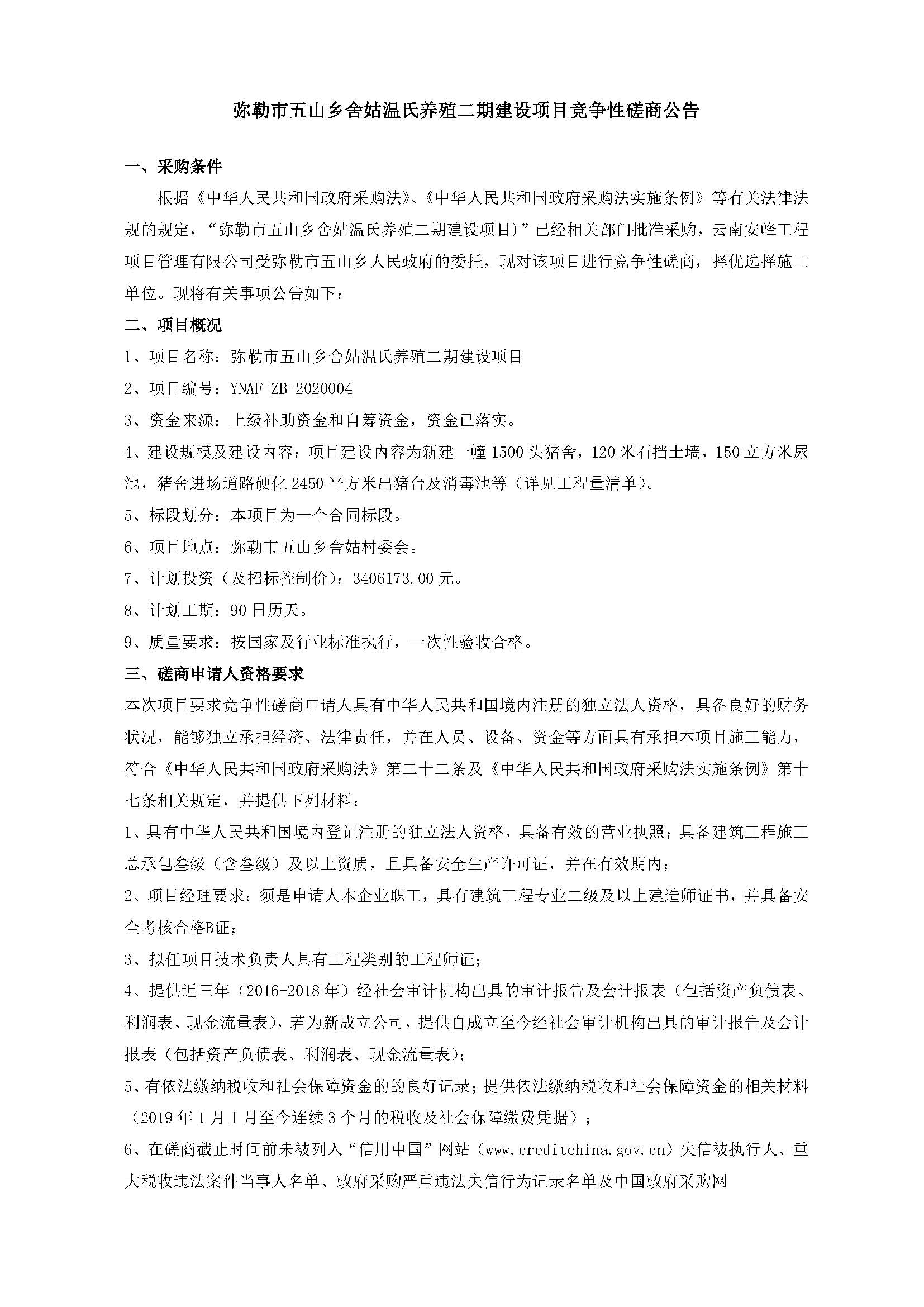 彌勒市五山鄉(xiāng)舍姑溫氏養(yǎng)殖二期建設(shè)項(xiàng)目競(jìng)爭(zhēng)性磋商