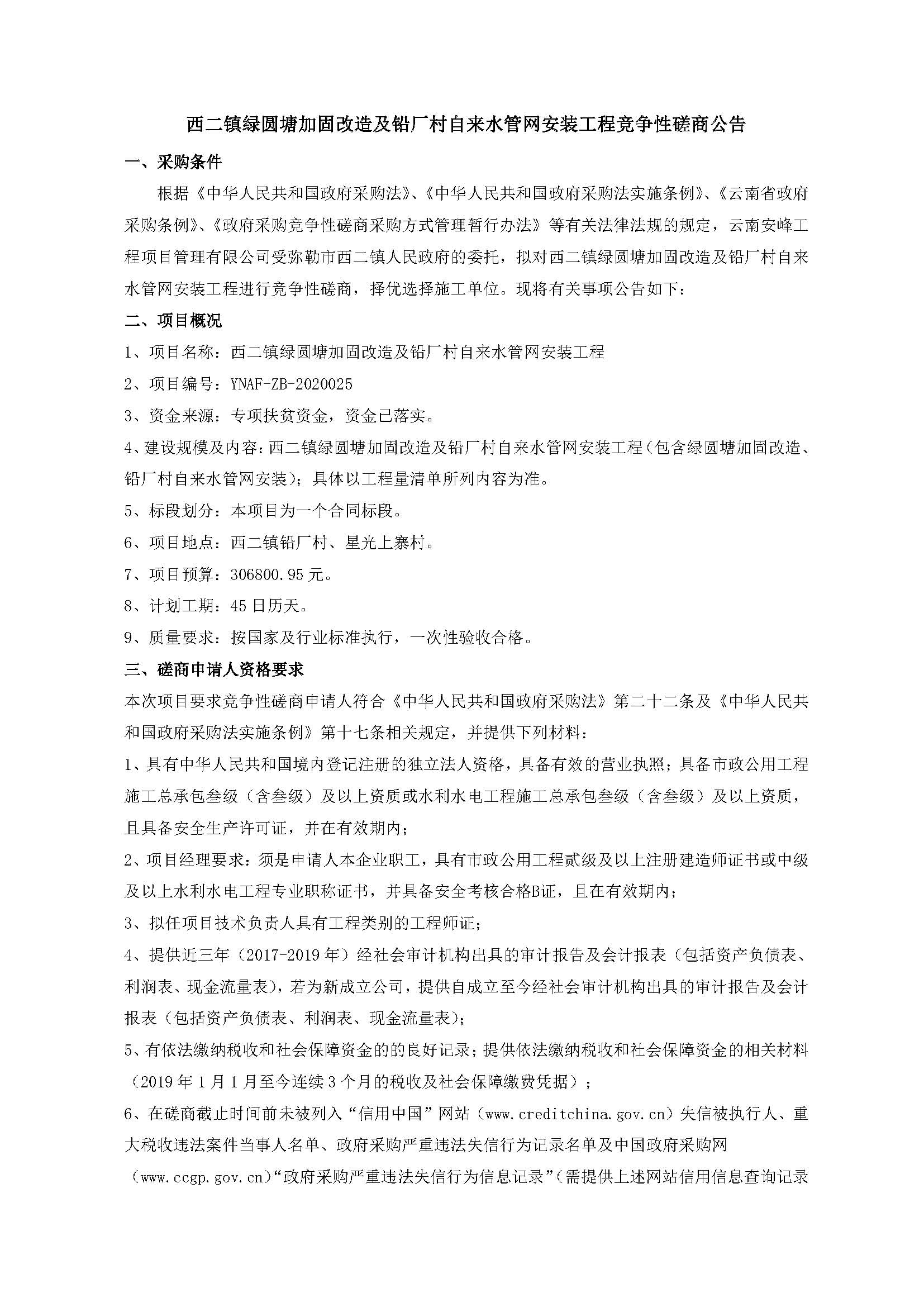 西二鎮(zhèn)小黑龍至橫塘子片區(qū)農(nóng)業(yè)灌溉專項(xiàng)產(chǎn)業(yè)扶持項(xiàng)目競(jìng)爭(zhēng)性磋商公告