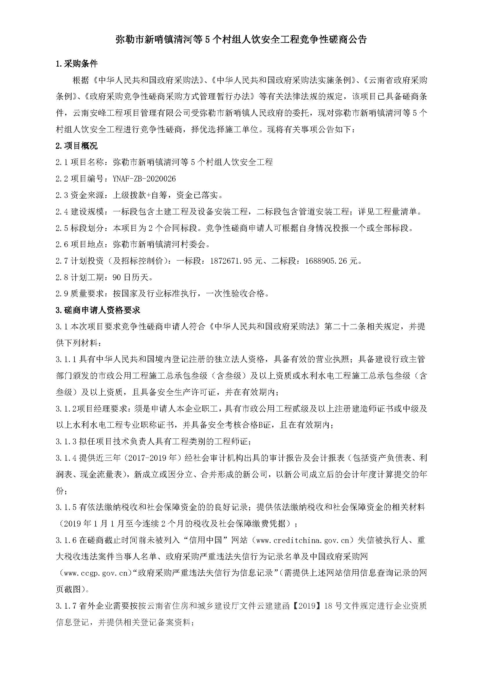 彌勒市新哨鎮(zhèn)清河等5個村組人飲安全工程競爭性磋商公告