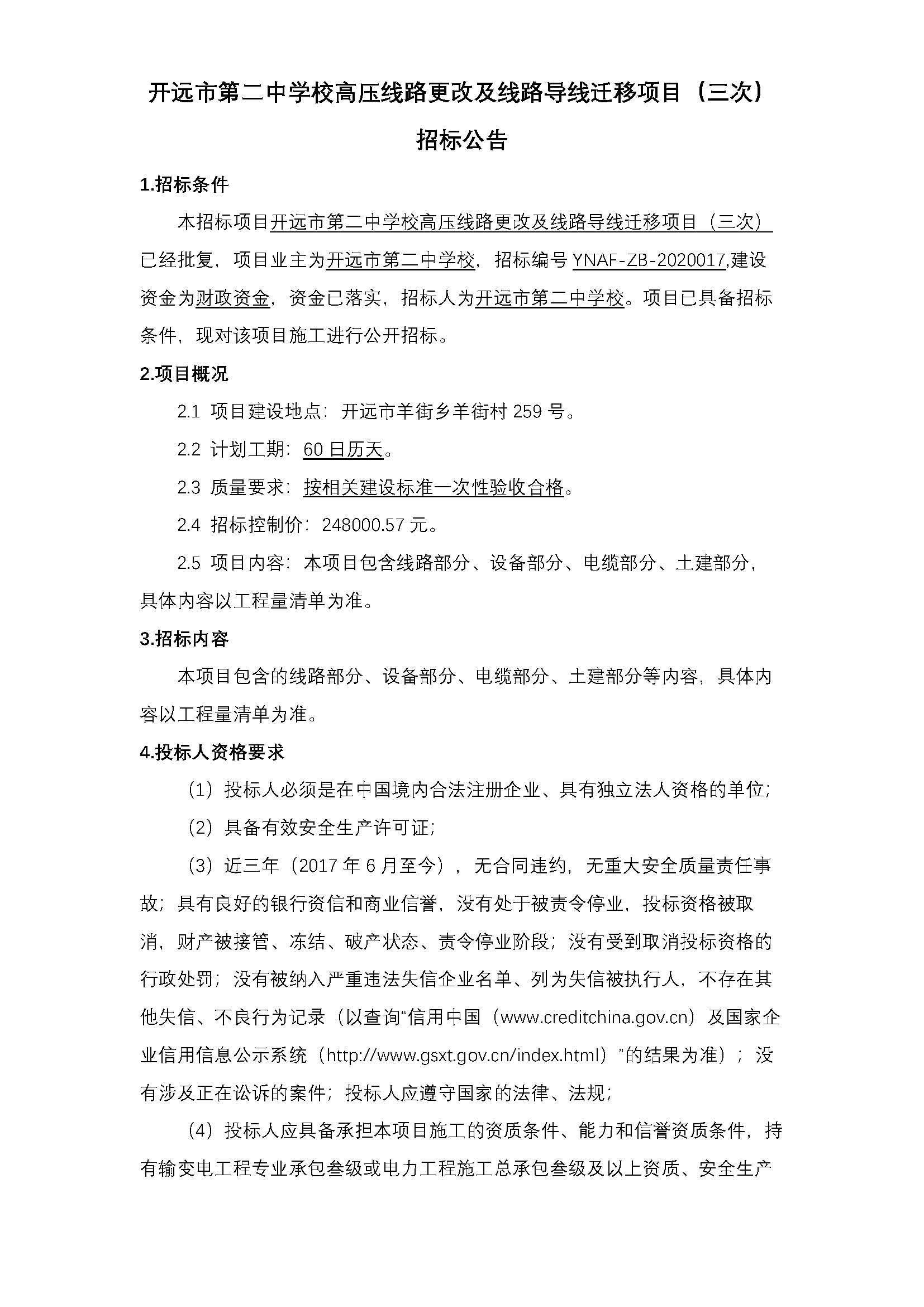 開遠(yuǎn)市第二中學(xué)校高壓線路更改及線路導(dǎo)線遷移項目(三次)招標(biāo)公告