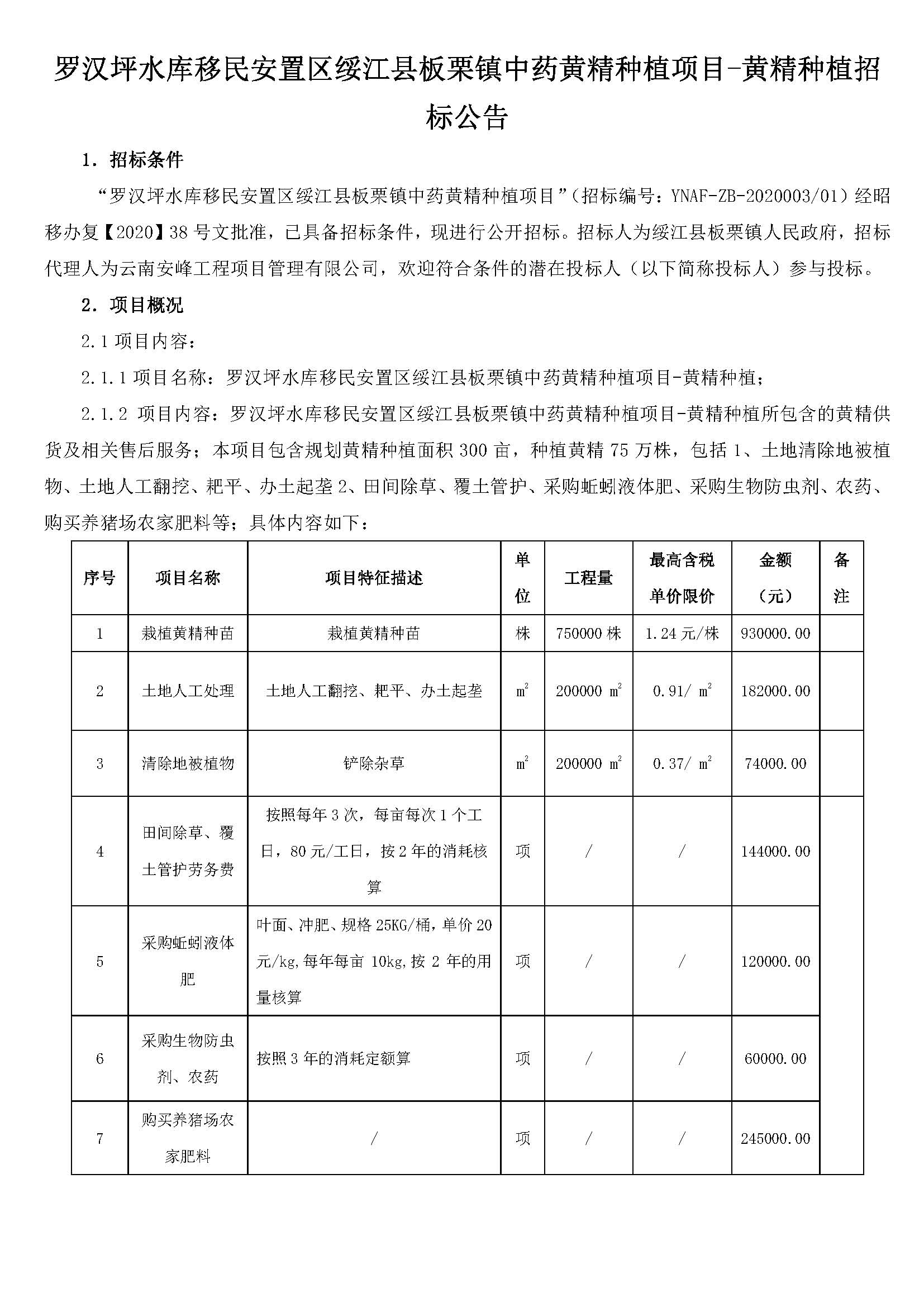 羅漢坪水庫移民安置區(qū)綏江縣板栗鎮(zhèn)中藥黃精種植項目-黃精種植招標公告