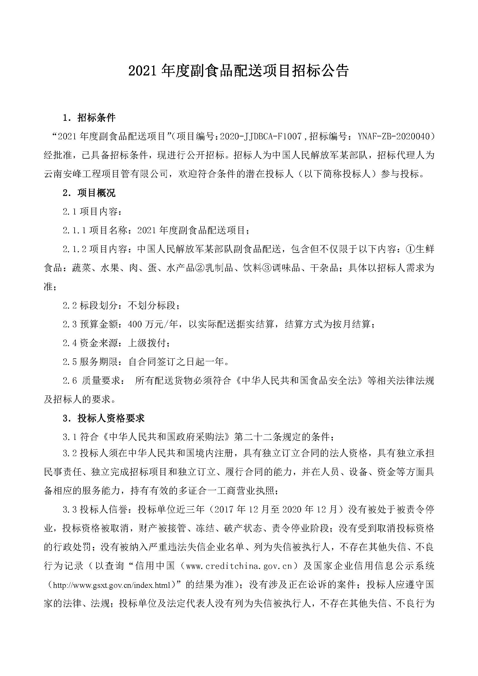2021年度副食品配送項(xiàng)目招標(biāo)公告